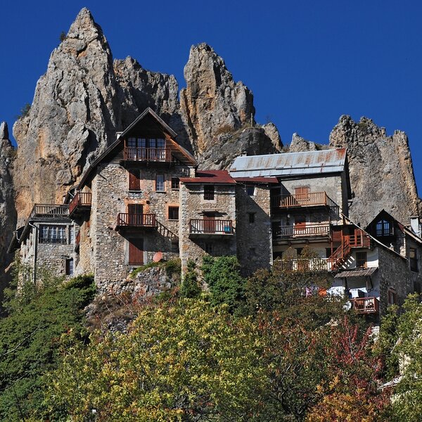 Surplombé par la pyramide du Mont Mounier, c'est le royaume du mélèze. Plus à l'ouest, dans la vallée d'Entraunes, les petits villages et les hameaux s'élèvent sur des balcons baignés de soleil. Sur les deux rives du Var s'étend un paysage de forêts et de prés de fauche, sur lesquels s'élèvent les aiguilles calcaires de Pelens et les falaises en grès du massif de Sanguinière. La géologie, dans ce coin des Alpes, est émouvante : ce sont les gorges rougeâtres de Daluis et de Cians, gravées sur de nombreux kilomètres dans les pélites. Ce sont les frêles "demoiselles coiffées" de dolomite à Péone. C'est le calcaire du Mont Mounier, modelé par les glaciers. Ici, il vaut la peine de marcher bien planté sur ses pieds et le nez en l'air, prêt à s'étonner des mille formes du paysage.